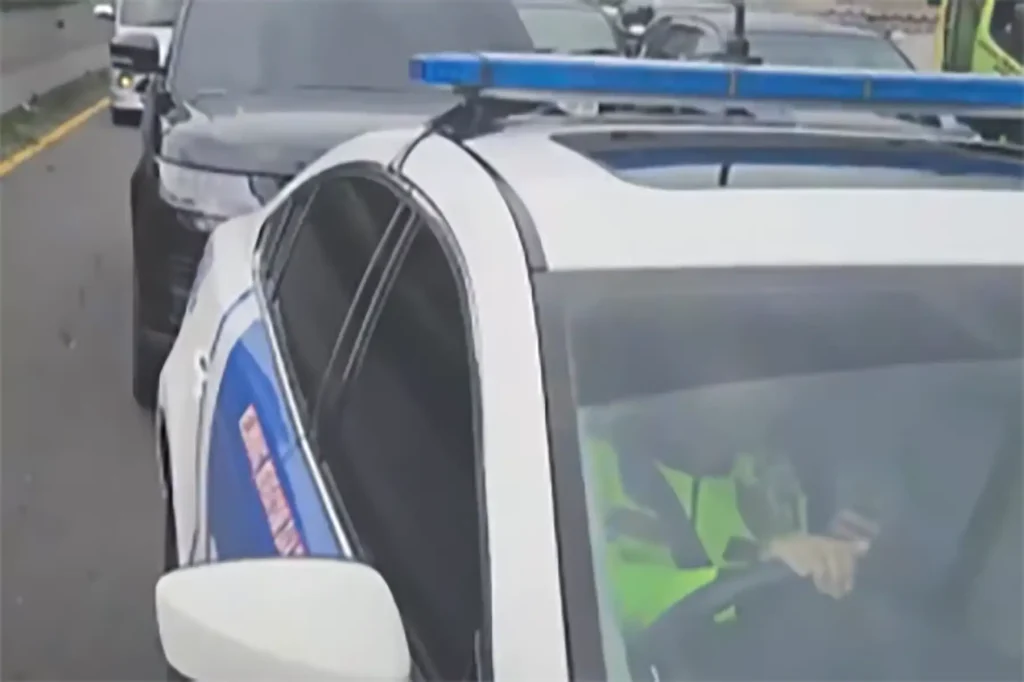 Berdasarkan keterangan pengendara yang membagikan video, insiden bermula ketika kondisi lalu lintas di lokasi sedang mengalami kemacetan total. Di tengah kepadatan tersebut, mobil patwal datang dari arah belakang dengan menyalakan lampu rotator dan pengeras suara untuk meminta jalan.